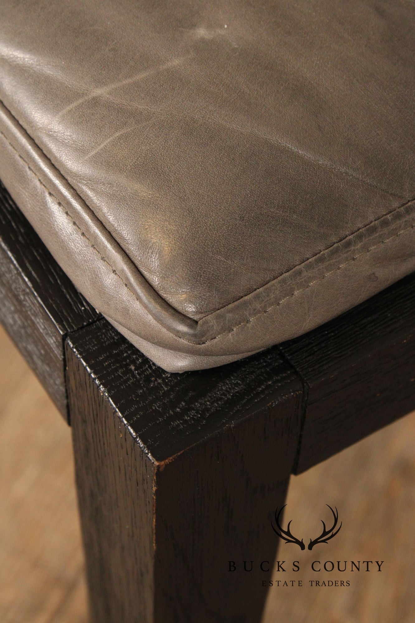 High Quality Set Of Four Ebonized Frame Side Chairs With Leather upholstery